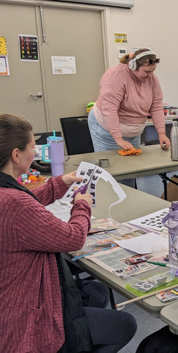 Yourself!! We supply a "starter kit" (sketchbook, graphite pencils, and erasers). Plus we have a bunch of art supplies to try out while you're here.You're welcome to bring whatever art supplies you feel like working with or any support aids you find useful, whether it's a physical aid, sensory aid, or the like! We also have a handful of fidgets to choose from.